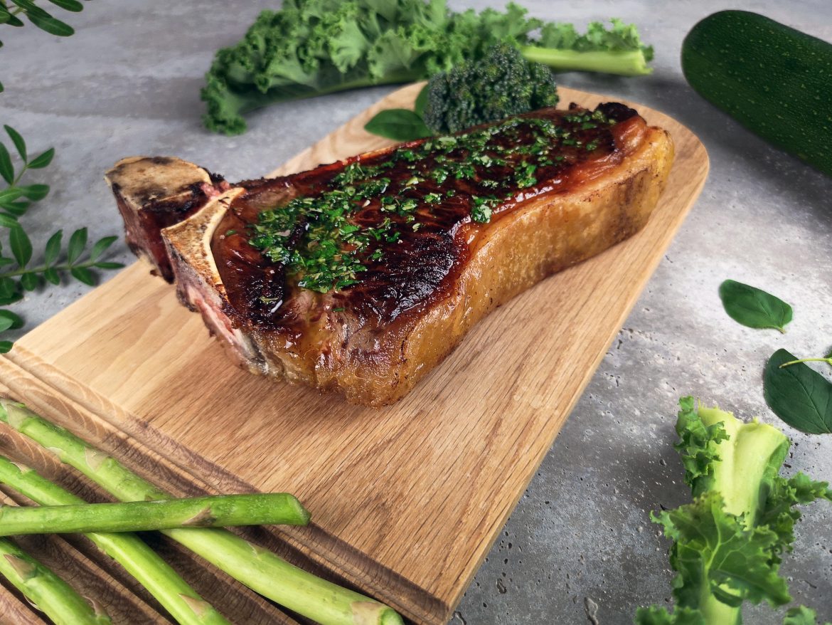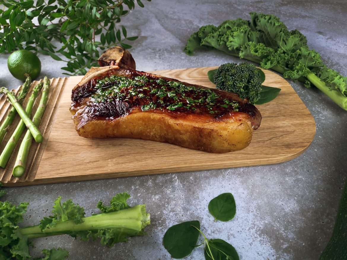 Veckans recept: Ryggbiff med örtolja och gröna saker