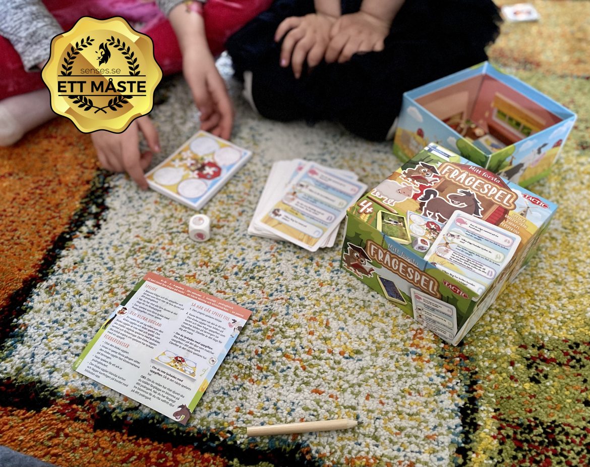 Ungarna älskade det här, kanske favoritspelet i år! Mitt första frågespel finns i två utgåvor, en mindre, kompakt och ”bärbar” låda samt ett mer klassiskt brädspel med en spelplan. Två spelare är kul, men fler deltagare blir ännu roligare. Frågor i fyra kategorier – som motsvarar olika djur – där det gäller att svara rätt, kreativt, ställa en fråga själv eller härma djuret. Kul! Vi testade båda versionerna och fann att resespelet är den version vi skulle rekommendera, dels för att det är smidigare att ta med men också för att spelflödet känns mer naturligt där (brädspelet har lite omständiga instruktioner för hur exakt förflyttning och spelsätt går till). Den mindre versionen också något billigare. Nivån på frågorna är väldigt snäll och inkluderande, kanske aningen lätta frågor överlag till och med för en fyraåring, men det gör inget då spelet i övrigt är så mångsidigt och barnvänligt. Vi föreslår att du låter barnen rita eller färglägga djuret de ska få en kategorifråga från, så får man öva ritande och fantasi också, inte bara bocka av dem (fler pennor, gärna med färg, rekommenderas då). Betyg: 10