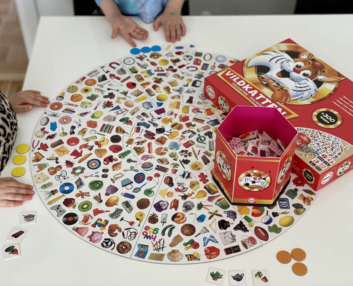 Hypat och poppis barnspel som återfinns såväl på förskolor som i mångas hem idag. Busenkel premiss som går ut på att man får brickor (i denna utgåva tre åt gången, av 368 stycken) och måste finna motsvarande bilder på spelplanen och lägga ut sina egna så snabbt som möjligt. Enkel spelidé, men också stressig och koncentrations-krävande samt att det tränar minnet. Tyvärr känns byggkvaliteten rätt skranglig, särskilt för ett spel riktat till barn och det gjorde att delar drogs isär redan på första genomspelningen. Behållaren som ska innehålla 300+ brickor är helt obegripligt dysfunktionell för ett barnspel, den håller inte ihop ordentligt och skapar brick-kaos som hälls ut varje gång den flyttas oförsiktigt (”försiktigt” och ”småbarn”, är en utmanande ekvation). Det var också förvånansvärt bökiga instruktioner till en så simpel idé och vi fann att egna, anpassade regler fungerade bäst (typ man turas om att dra en bricka och så måste de andra finna rätt bild på planen och peka på den, den som gör det först får brickan och man spelar och så kör man till exempelvis tio stycken). Betyg 6