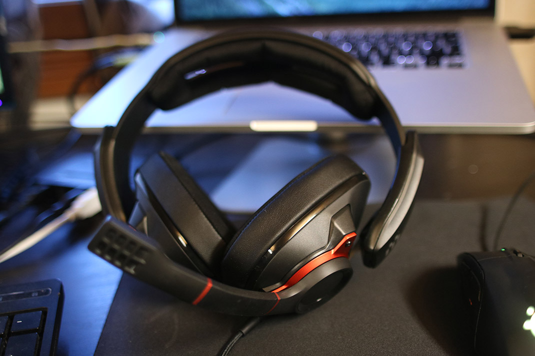 GSP 600 Gaming Series känns rejäla och påkostade när jag lyfter dem ur kartongen. De är ganska stora och känns nästan lite åt det klumpiga hållet, men de är samtidigt förhållandevis lätta och sitter skönt på huvudet. Jag har ett ganska stort huvud till min 196 cm långa lekamen, så jag behöver oftast anpassa hörlurarna till den största storleken – och så är fallet även här. Den rejäla micken som går att vika upp, men inte att ta bort, är ligger lite för tight mot min mun. Den gör fysisk kontakt med kinden vilket känns något irriterande: det blir lite av en klaustrofobisk känsla av det hela.