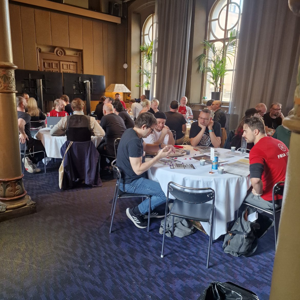 Jag var själv på på spelkongressen i fjol och som välbekant kunde jag inte sluta hänföras av de otroligt vackra salarna som vi går runt i när vi tar oss igenom havet av människor för det slutsålda eventet. Jag fullkomligt njuter av allt som det har att erbjuda. Fria Ligans shop är packat till bredden med Lore-böcker, kampanjböcker, och monster-böcker från de olika kampanjerna som Fria Ligan ger ut, allt från Nordiska väsen & Coriolis till Drakar & Demoner. Hade man föranmält sig så kunde man delta i de olika spelgrupperna eller delta i SM i Drakar & Demoner.