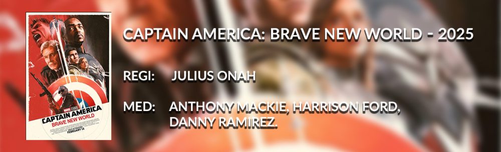 I Captain America: Brave New World har Sam Wilson (Anthony Mackie) tagit över rollen som Captain America och måste navigera genom en internationell konflikt som involverar Thaddeus Ross (Harrison Ford), som nu är USA:s president. Sam måste samarbeta med Ross för att stoppa en farlig konspiration ledd av The Leader (Tim Blake Nelson) och han får hjälp av sina gamla allierade, inklusive Joaquin Torres (Danny Ramirez) och Isiah Bradley (Carl Lumbly), som tekniskt sett var den första supersoldaten. Wilson står inför sitt största hot någonsin, och utan superkrafter blir hans uppdrag om möjligt ännu svårare.