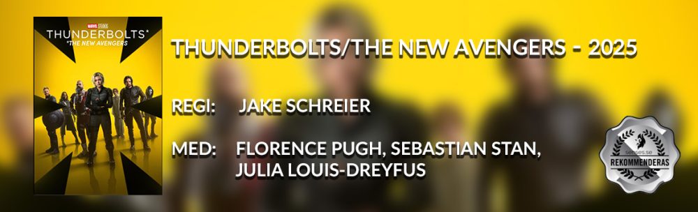 Inför filmen var jag skeptisk och förväntade mig ännu en medioker Marvel-produktion. Glädjande nog hade jag fel. Thunderbolts är underhållande och rolig, en frisk fläkt i en genre som länge känts trött. Filmens kärna är Florence Pugh och David Harbour, vars karaktärer tillför mänsklighet och värme som Marvel på senare tid saknat. Resten av teamet får större utrymme än tidigare, och det är kul att återse både Wyatt Russell och Sebastian Stan i roller som utvecklas på intressanta sätt.