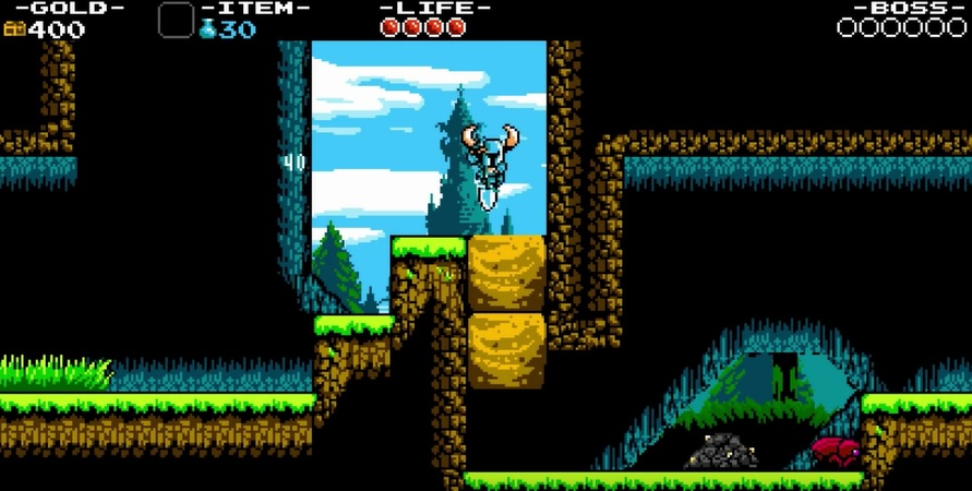 Shovel Knight studsar sig igenom nivåer med sin spade likt en viss herr von Anka i Duck Tales, men kan även använda den på flera sätt. Det är ett mångsidigt föremål och ett värdigt, om än mer humoristiskt, substitut till Links Master Sword. Längre in i spelet dyker flera förmågor upp. Och helt plötsligt kan det vara nödvändigt att ta några steg tillbaka och blicka mot tidigare områden för att hitta nya vägar fram genom äventyret och kungadömet. Hmmm, det där lät bekant på något sätt… Andra saker som Shovel Knight gillar är att slå sönder vissa block för att hitta gömda skatter, eller att finna lite välbehövd speldesignerkärlek i checkpoints utformade som magiska kristaller. För resan är lång, och inte alls så enkel som man kan förledas att tro under den inledande myspysiga startsträckan. I spelet stöter man även på spännande ting som, håll i er nu, rörliga plattformar! Och minibossar! Vem hade trott…?