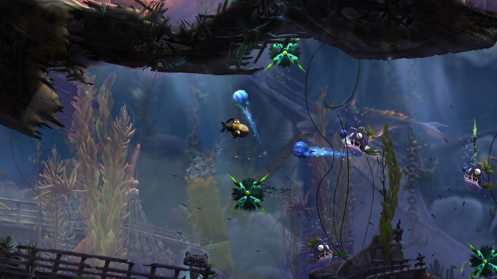 Det första som slår en med Song of The Deep är att det lyckas skapa en himla go sagostämning. Grafiken är vacker och färggrann, kanske inte fantastisk i sig, men färgerna, flytet, musiken och flickans breda, irländska berättarröst skapar en ton av berättelse som för tankarna till ett annat briljant spel, nämligen Child of Light. Insomniac har dock valt att hålla vår protagonist inlåst i en undervattensfarkost, vilket skapar ett avstånd mellan oss som spelare och identifikationen med … farkosten. För flickan finns bara i voice over och avbildad i mellansekvenserna, som då och då spelas upp som en slags old-school serietidning. Ett annat underligt designval är striderna, som är ganska många genom hela spelet och som gjorts onödigt svåra och krångliga pga mekaniken där farkosten måste stå i viss position för att kunna ”slå” fiender med sin mekaniska arm eller kasta objekt som ska explodera mot dem. Idén är förvisso god, men genomförandet lämnar mycket att önska och bidrar till onödig frustration och omspel på sekvenser som i sig inte egentligen är särskilt svåra.