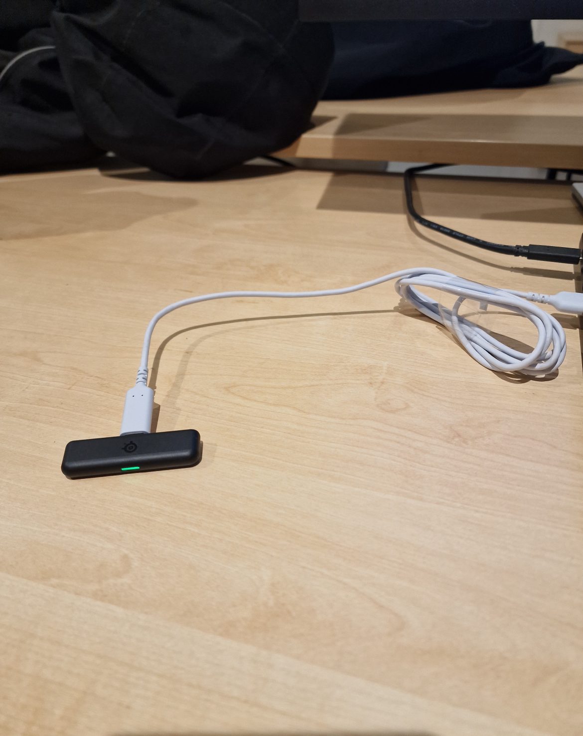 Om vi hoppar tillbaka till anslutningen så är det inte hur man ansluter, utan mer hur det ser ut när du har anslutit. Detta eftersom mottagaren sitter på en ganska lång kabel på sidan av konsolen, som rent ut sagt ser fult ut. Här kan man dock argumentera att det egentligen är Xbox som är lite gammalmodiga och inte har en USB-C-anslutning i konsolen utan måste konverteras mellan konsol och mottagare – men ändå.