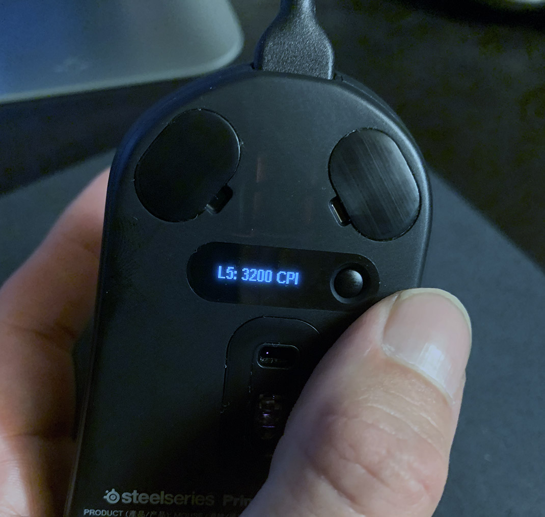 Jag börjar lätt med att testa Steelseries Prime+ genom att jobba med ett VFX shot i After Effects. Det jag har blivit bortskämd med på andra Steelseries-möss är den praktiska knappen på ovansidan där jag kan ställa in CPI (Counts per Inch – ju högre CPI, desto känsligare) med ett snabbt klick. Den knappen sitter inte där på Prime+ utan den sitter på undersidan. Jag förstår kanske varför, då det minskar risken att trycka på den av misstag, men då jag använder den ganska ofta blev det ett fasligt vändande och vridande på Prime+. En smidig display visar vilken CPI-inställning du har och det är ett plus.