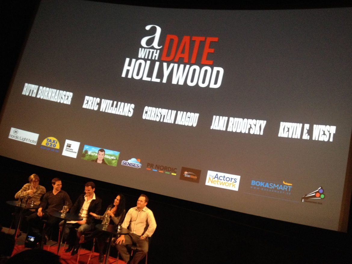 Filmhuset på Gärdet i Stockholm kokade av entusiasm och strålande deltagare fredagen den 24:e april, då A Date with Hollywood besökte Bio Victor och Ruth Bornhauser, Eric Williams, Jami Rudofsky och Kevin E West höll hov under Christian Magdus samtalsledning kvällen igenom. Nära 200 personer fick tips om att lyckas i Hollywood, hur man får en agent eller en manager, hur man får sitt manus läst och vilka de tre viktigaste sakerna är att tänka på i Los Angeles. Workshop-dagen under lördagen den 25:e april hade sålt ut sen länge och gav en utvald skara deltagare djupare inblick i filmbranschen i Hollywood – vad är en bra aniktsbild / headshot? hur ska man tänka kring en showreel? vilka är de bästa resurserna online för manusförfattare och skådespelare? Allt detta och mer fick 60 lyckliga deltagare med sig, plus direktkontakt till hela panelen. Borttaget: Vi på senses.se gratulerar Kevin, Jami, Christian, Eric och Ruth till fantastiska dagar och hoppas innerligt vi får vara del av något liknande snart igen! Se höjdpunkter från dagarna på sociala medier under hashtaggen #DateHollywood.