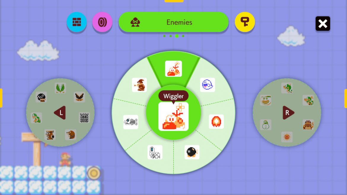 Sen, som grädde på moset, så kan du välja mellan de flesta Super Mario-spelen att bygga i: från att bygga banor till original, 8-bitars Super Mario Bros till New Super Mario Bros U. Alla banor och gubbar uppdateras automatiskt och du får tillgång till alla byggstenar som finns.