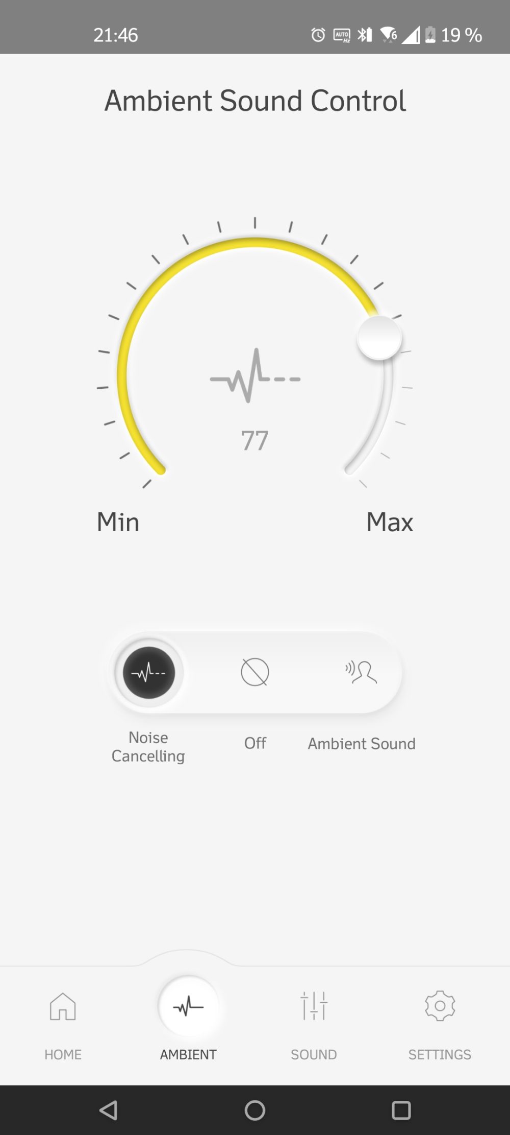 Nästan samma visa är det med genomhörningen, du kan inte ställa in nivån men har fortfarande tillgång till de två alternativen Tansparent eller Attention. Och slutligen får du inte heller funktionerna Best ear piece test eller Headphone fitting sensor, men i ärlighetens namn är dessa två ingen enorm förlust.