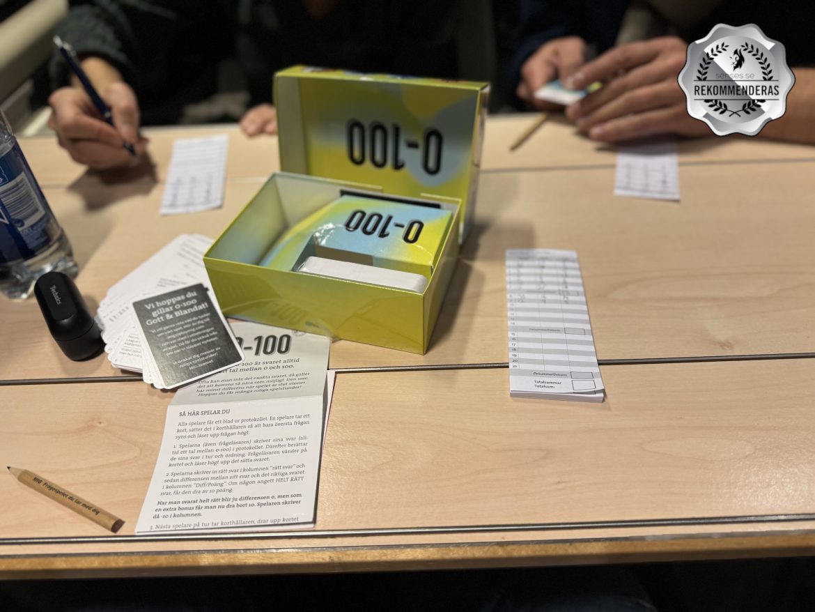 Ytterligare en version av de populära MIG-spelens 0-100-konceot, där alla svar är något mellan 0 och 100 och där alla således kan vara med och chansa (om man inte vet). Den med minst poäng (differens) vinner! Enkelt och direkt, superkul att ha med på resan. Frågorna är varierade och mycket bra, även om vi hittade en slamkrypare (Finland fick kvinnlig rösträtt före Sverige, vilket år på 1900-talet? Rätt svar man söker är 13, men Finland var ju fram till 1917 inget land utan ”självständigt furstendöme” i ryska riket). Över 700 frågor har man fått ihop och det gör utgåvan väl värd att investera i, även för måttligt intresserade frågesportnördar. Betyg: 8