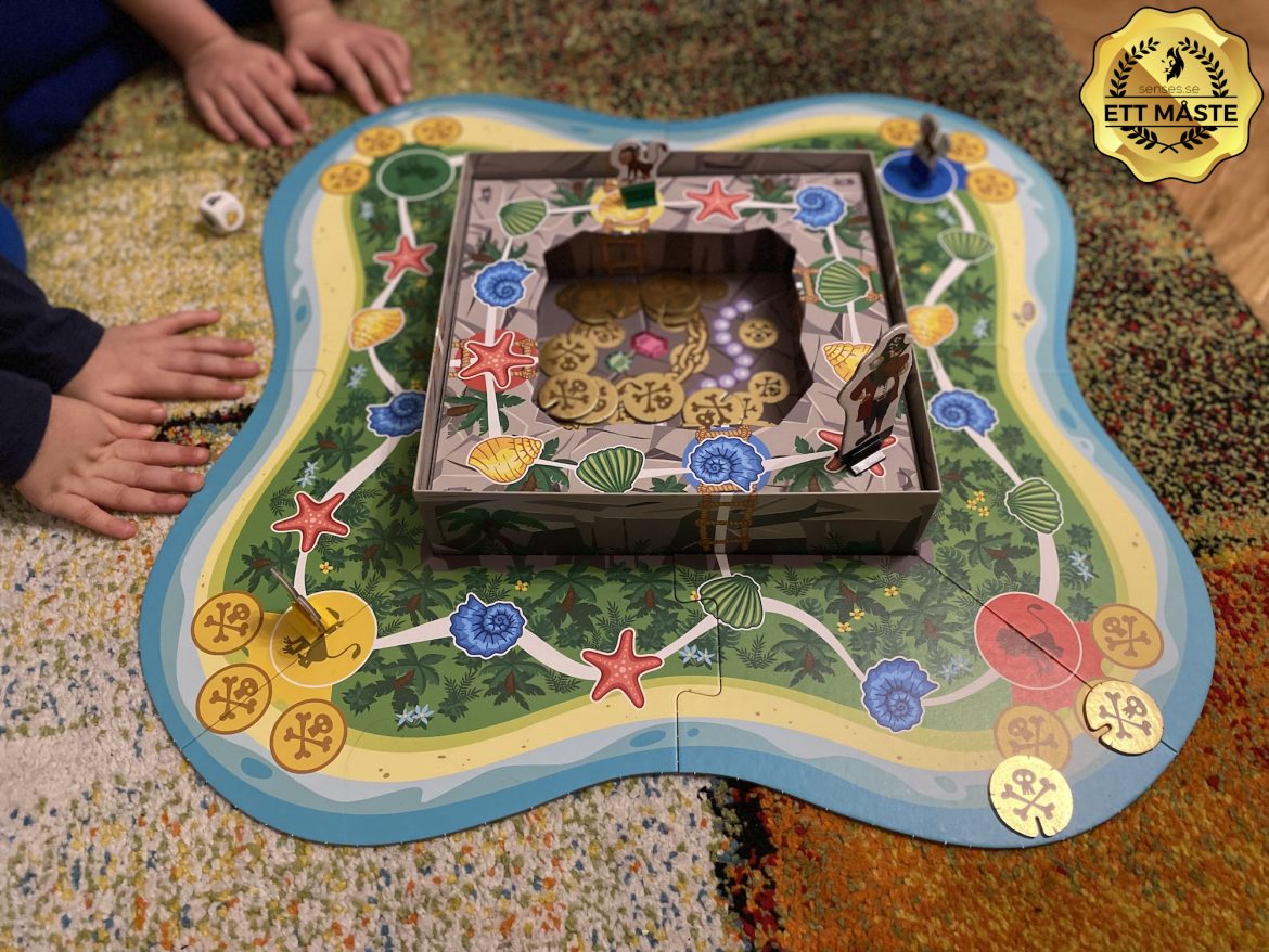 Ett enkelt men fartfyllt spel där det gäller för ett gäng busiga apor att norpa guldpengar från en pirat! Knattarna tyckte det var jättekul. Särskilt roligt var att få flytta sjörövaren och fälla krokben för andra spelare. Perfekt litet tärningsspel med lite strategi att spela med yngre barn eller låta dem spela mot varandra. Betyg: 9