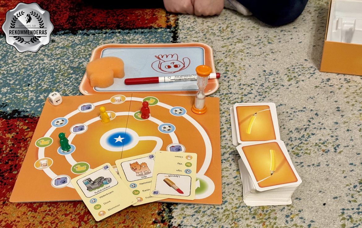 Riktigt skojigt och fartfyllt spel där det gäller att rita och försöka få de andra att gissa vad man ritar under tidspress. Kräver dock minst tre spelare och förmodligen en vuxen spelledare, för även om spelet relativt lätt så finns kort som mindre barn omöjligt kan förstå eller rita. Betyg: 8