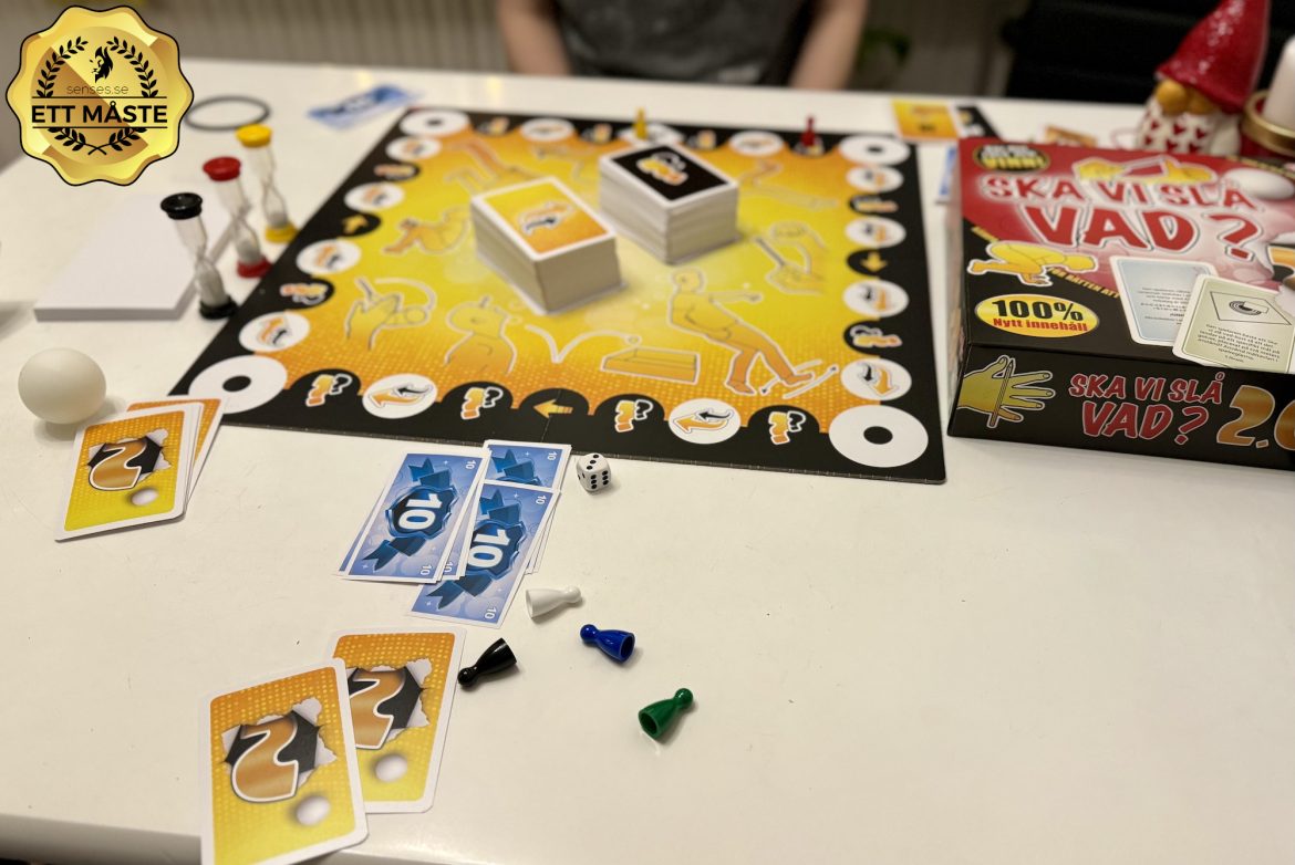 Årets vuxenspel för senses-redaktionen! Denna kommer att gå varm på julafton. Fartfyllt och roligt koncept där det gäller att känna sina medspelare och hålla pokerface. Kan du gå tre varv runt en stol med en pingisboll mellan knäna på 30 sekunder? Kan du lösa tre negativa par med tal som ska läggas ihop på 15 sekunder? Nervkittlande omgångar. Satsa på vad du tror dina medspelare kan och inte kan. Håll masken. Stort plus för enkla och tydliga regler. Massor med timglas, en pingisboll och pappersblock bäddar för roliga utmaningar – men kunde man inte kostat på att skicka med en penna så man slipper leta när man ska börja spela? Man skrattar och är på spänn, oförskämt roligt till drinkar. Enda nackdelen är att man behöver vara många (minst fyra). Betyg: 10
