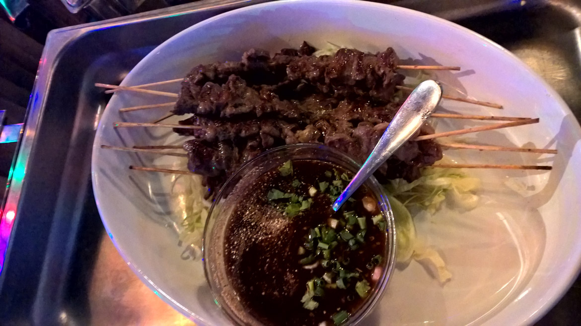 Klassiska Somtam (papayasallad) var saftig och fräsch, men stora överraskningen var nog entrecote-spetten (Nua Jaang) som bara gifte sig så perfekt med Singha-ölen och den tillhörande tamarindsåsen. Extra kul är också att Ho’s Thai försöker ha en bred och smakrik vegan- och vegetarian-meny med köttfria versioner av sina signaturrätter.