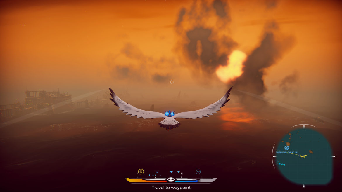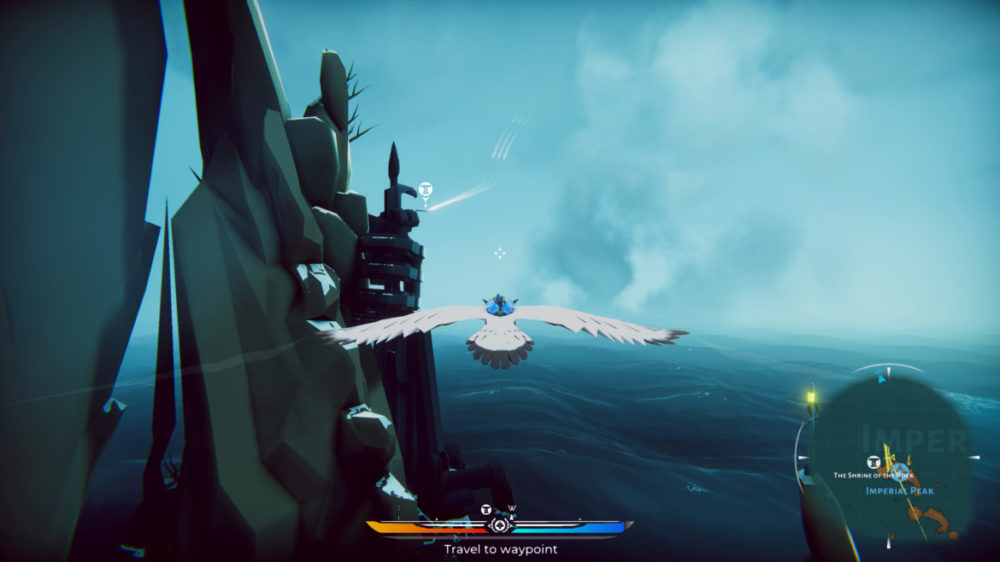 Musiken är bra och pampig, signerad film- och spelkompositören Benedict Nichols och den ger helt rätt känsla för att ge sig in i ännu en het eldstrid med båtar eller andra bepansrade flygfän. Kontrollerna är enkla och snabbt inlärda, men jag kände att jag saknade en boost-knapp eller åtminstone en fast travel-möjlighet. För hur snygg grafiken än är så blir det till slut lite tröttsamt att stirra in i en fågelstjärt under längre stunder, då du till exempel flyger hem från ett uppdrag. En annan knapp som jag saknade var att snabbt kunna vända. Det är en funktion som jag kan förstå saknas på spel med flygplan – då det inte skulle vara så realistiskt, att kunna loopa hur som helst – men en fågel skulle lätt kunna vända sig luften smidigare än ett flygplan.