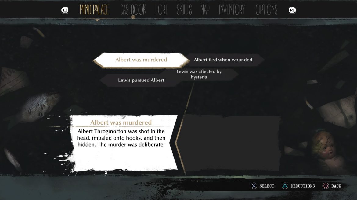På ytan älskar jag verkligen det här spelet. Miljöerna, stämningen och grafiken är snudd på perfektion. Det är ett väldigt omslutande spel och du färdas snabbt tillbaka till 1920-talets USA, där du finner dig själv omgiven av mystiska människor och varelser. Du använder dig av slutledningsförmåga i ditt Mind-Palace där du kan avgöra om de du pratat talar sanning eller ej, du kan kombinera ledtrådar såsom du vill och ordningen bestämmer utgången. Ganska nyskapande faktiskt, har inte sett just den lösningen någon annanstans.