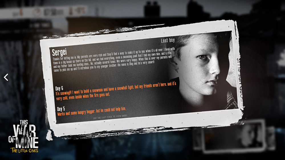 Nytt på next-gen konsol är The Little Ones – som dyker upp en bit in i spelet och alltså är barnen. Att krig drabbar barn värst är ingen underdrift. Men barn är fortfarande barn – de vill leka, skratta och kan inte förstå många saker som vuxna tvingas igenom. Det är upp till dig att ta hand om dem, ordna med leksaker och se till att de får en så dräglig tillvaro som möjligt i väntan på att helvetet ska vara över. Att försvarslösa barn blandas in i spelet gör verkligen inte den emotionella solarplexussmällen mindre, tvärtom.