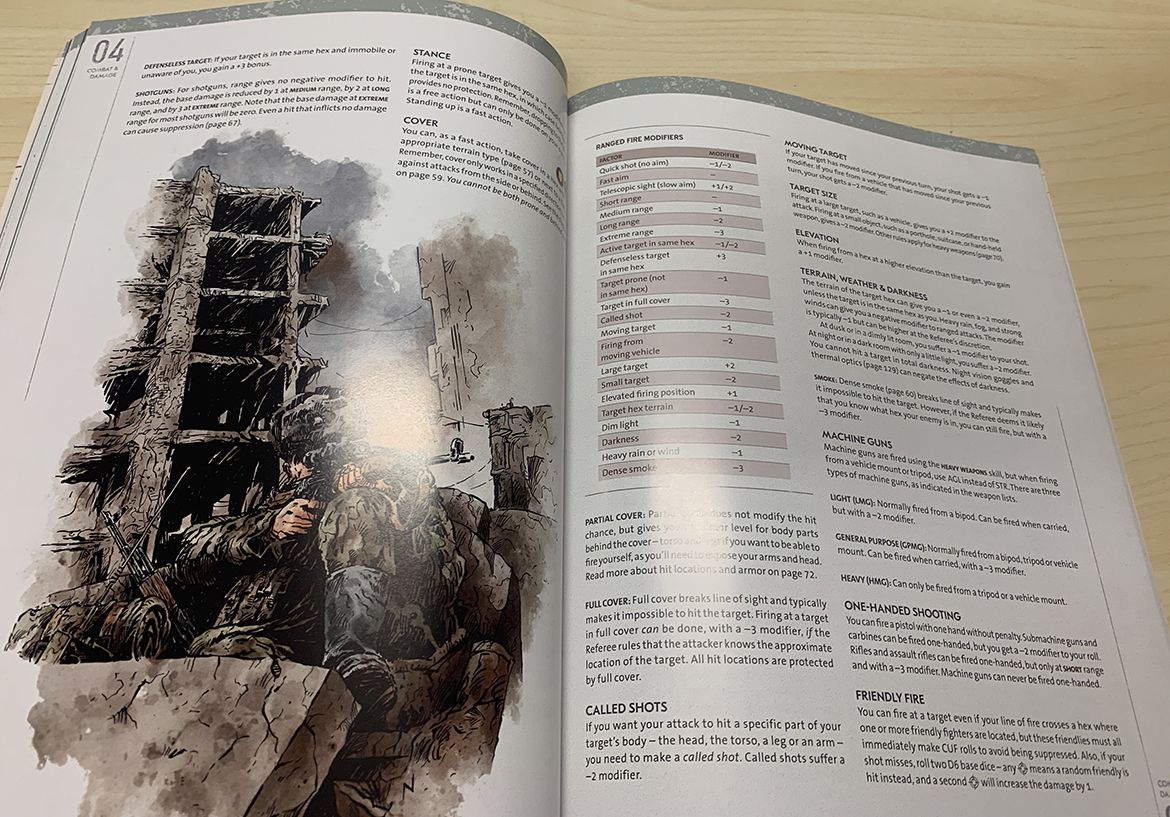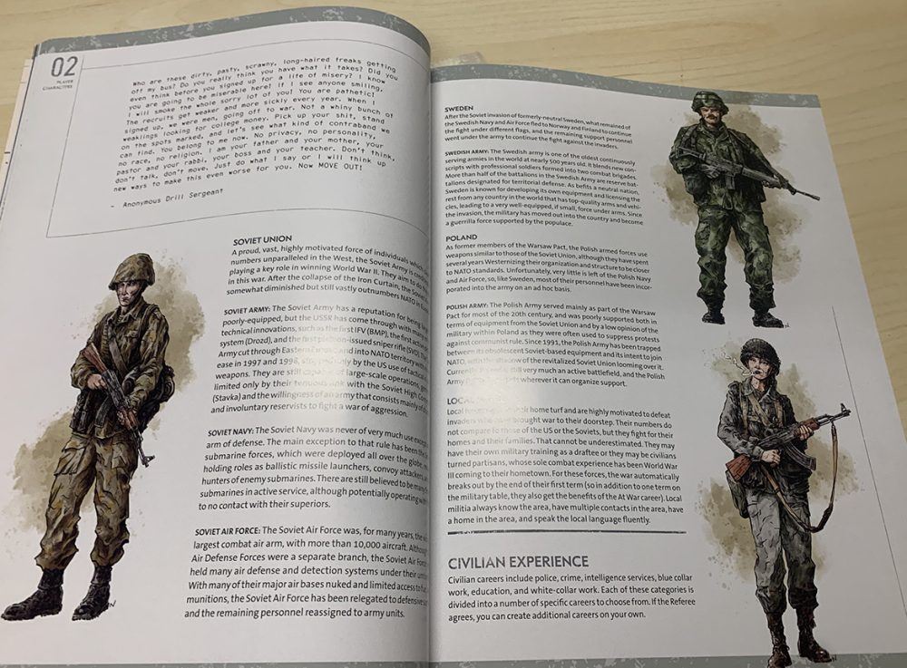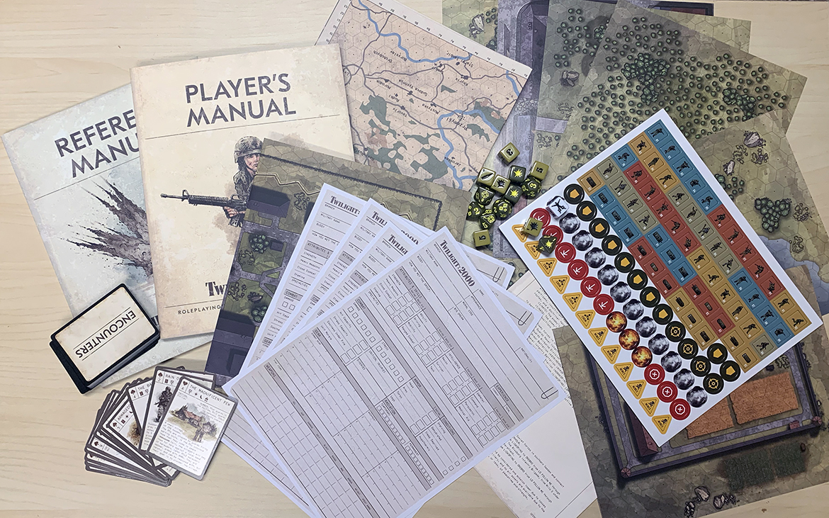 Längst ned i botten hittar jag två böcker. Den ena är den 152 sidor långa spelmanualen som innehåller alla regler, story och karaktärer. Sen finns den 112 sidor långa Referee (domare/spelledare) boken med all info som du behöver för att kunna skapa en spännande värld för spelarna. För att få ut det mesta av Twilight 2000 så rekommenderar jag att ni är minst fyra till fem personer inklusive spelledare.