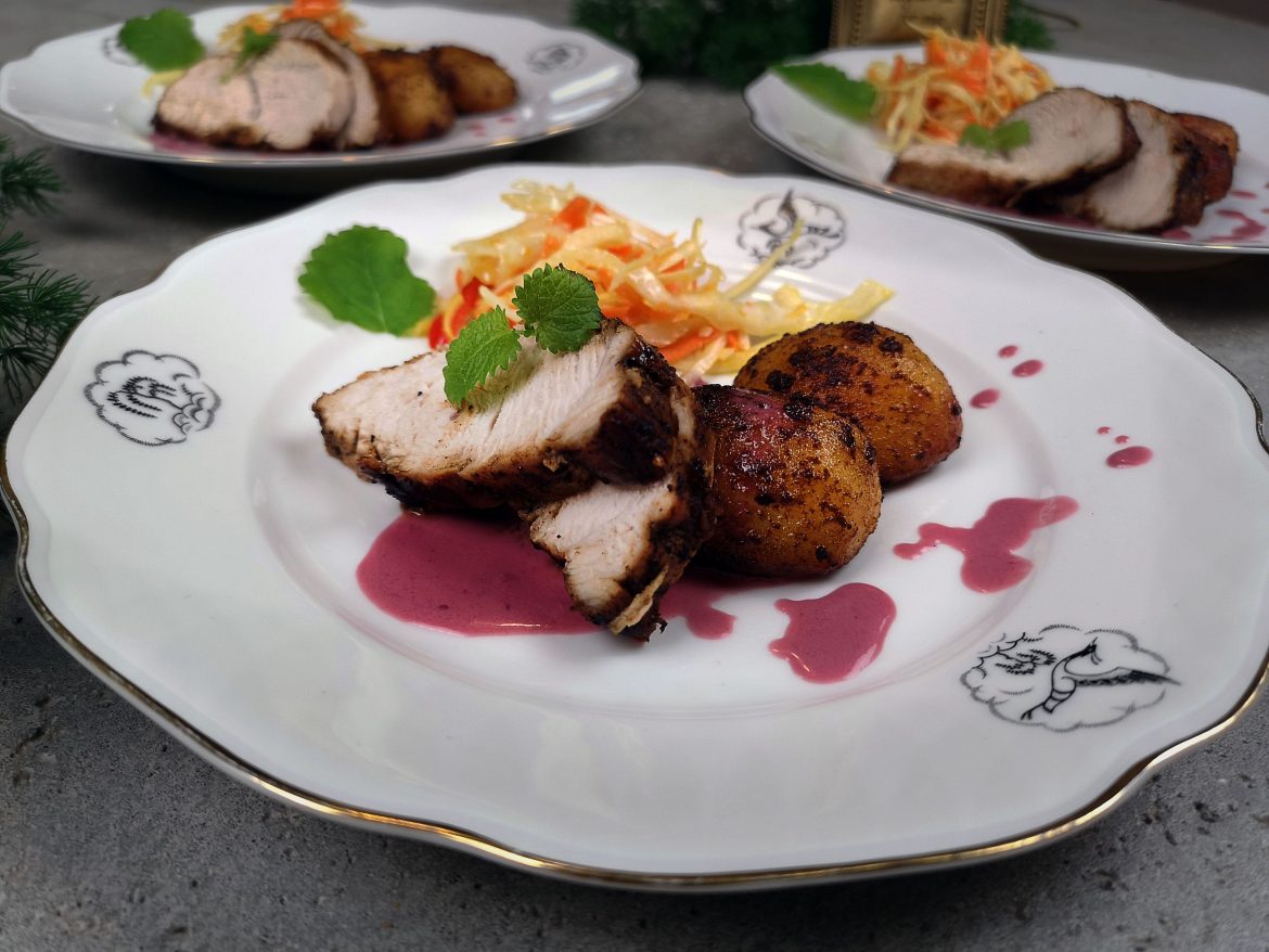 Till kalkonen serveras en riktigt god, marinerad potatis. Och icke att förglömma: en tranbärssås. I min version på såsen har jag i grädde men den går bra att utesluta (om man nu vill det). Jag tycker grädden rundar av såsen och ger den en fyllighet.