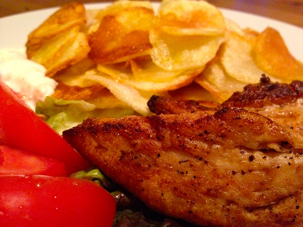 Stek de upptinade/färska kycklingfiléerna i rikligt med margarin, ett par minuter på varje sida så att de får fin stekyta. Salta och peppra. Skär lite i kycklingen för att se att den är genomstekt.