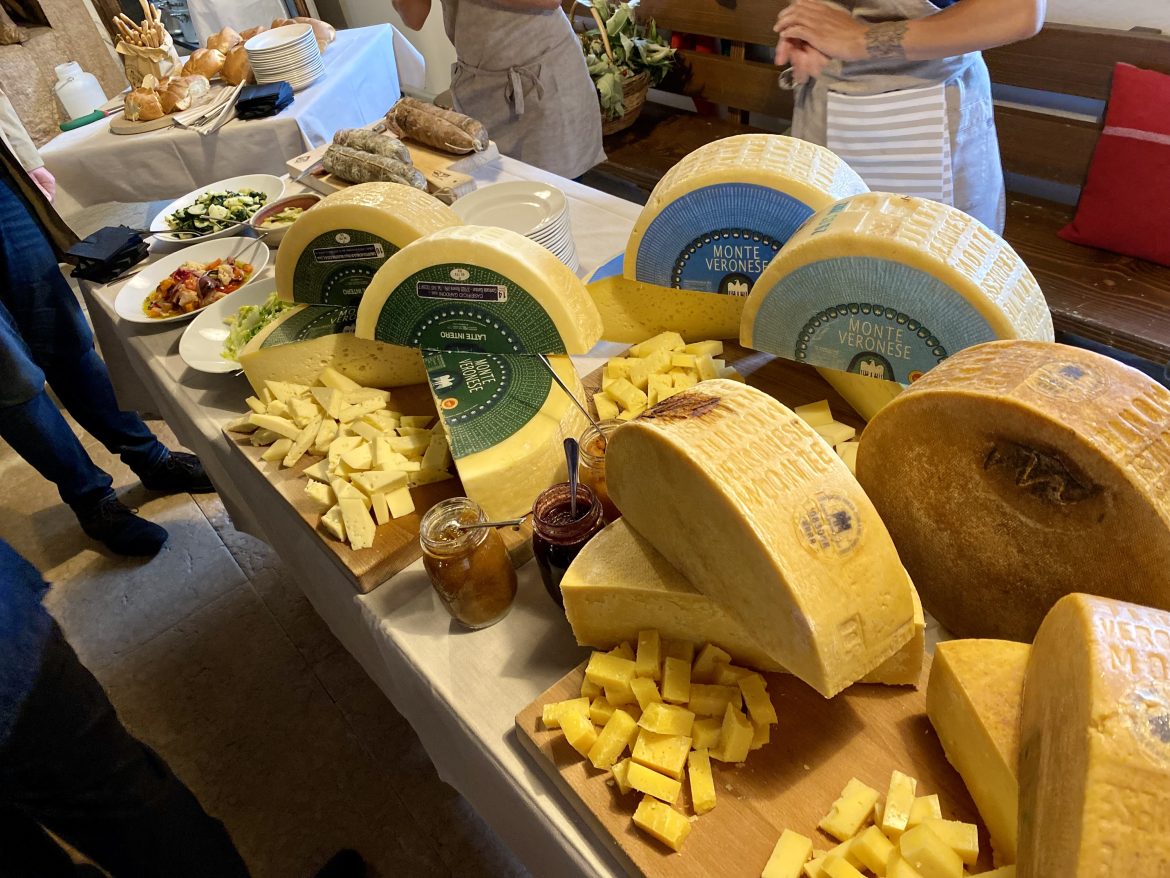 Vi tog oss först upp till Lessini-bergen i närheten av staden, där områdets lokala ost produceras – Monte Veronese. Denna ostsort är av skyddat ursprung, precis som exempelvis Parmesan, och det har faktiskt sina poänger utöver att skydda varumärket. Likt den franska termen ”terroir” när vi pratar vin – att vissa viner och drycker endast kan göras på en viss plats eftersom denna specifika plats har sina, väldigt vissa förutsättningar – är det samma sak med ost, faktiskt. Druvsorten, som i detta fall kan vara rasen på kon, och marken de betar på (gräset) avgör hur mjölken och följaktligen osten kommer att smaka. Precis som skördetiden för druvor sker sensommar eller tidig höst, så har även ost sin peak (även om man givetvis mjölkar året runt) – ost gjord på sommaren är allra godast, då förutsättningarna för bete är som bäst. Dessa ostarna är också dyrast. Italien har över 500 ostsorter och du kan faktiskt göra ost hemma relativt enkelt om du kan få tag i löpe (som finns naturligt i en av kons magar, vilket våra kloka förfäder upptäckte redan för 5 000 år sedan…) och mjölk som inte är pastöriserad. Efter 20 minuters rörande, runt runt med en slags sil (fuschiella) lyckades vi få till följande mästerverk.