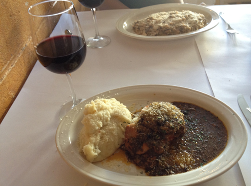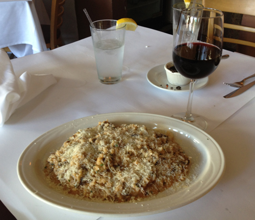 Christin tog ett vegetariskt alternativ, Risotto ai Funghi (Svamprisotto – 129 kr) – saftig men lite grötig och med något mycket tuggmotstånd.
