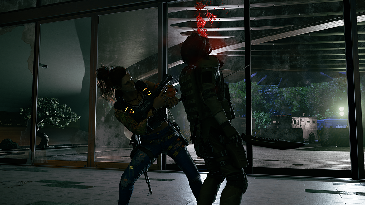 Wanted: Dead är utvecklat av Japanska Soleil som tidigare gett oss spel som Dead or Alive och Ninja Gaiden – två spel som är beryktat svåra att bemästra. Så är även fallet med Wanted: Dead, som är riktigt svårt redan från början. Jag har inga problem med spel som har hög svårighetsgrad; jag spelar just nu till exempel The Last of Us Part ISurvivor mode. Skillnaden är att Wanted: Dead är svårt för att du inte kan röra dig som du vill. Vi snackar ett team ninjor som inte kan hoppa över ett litet staket…?! Det går att hoppa över vissa hinder om du står bakom de, och hoppar, men inte alla. Är de det minsta för breda så kan man helt enkelt inte hoppa över. Det leder till helt vansinnigt mycket frustration som förstör spelupplevelsen för mig. Att spelskaparna tvingar oss att gå i en snitslad bana för att komma vidare stör ”realismen” i spelet då det mest logiska hade varit att bara hoppa över det lilla staketet och direkt gått till dörren jag ska gå ut igenom.