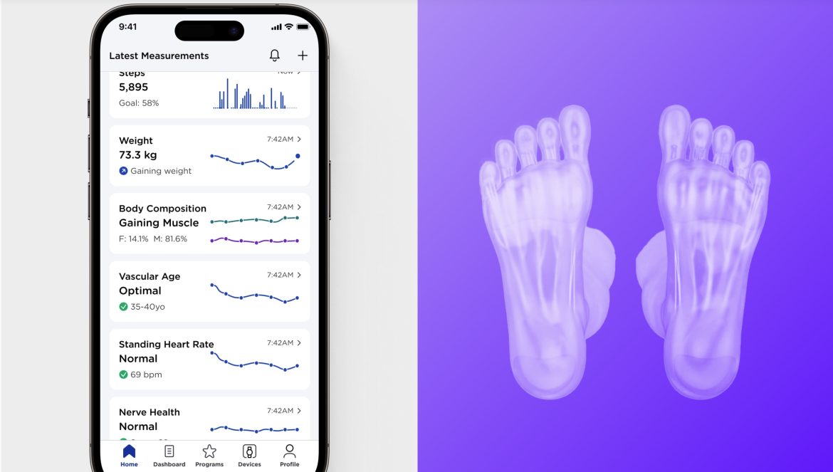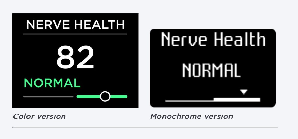 Nerve Health Score, NHS, är Withings egna mätvärde som bara finns i EU och just på Body Comp-modellen. Detta är en mätning och bedömning av ditt autonoma, perifera nervsystems övergripande skick. Du som vill sätta dig in i tekniken mer djupgående kan göra det här. I korthet går det ut på att stimulera svettkörtlarna i foten med elektriska impulser och på så vis får maskinen en överblick av eventuell neuropati, ett samlingsnamn för för ett sjukdomstillstånd i yttre nervbanor, som kan drabba människor med anlag eller långvarig diabetes till exempel. De autonoma nervbanorna, som går ned i fötterna, är ofta de första att skadas vid sjukdom och därför är en tidig indikation på problem eventuellt hjälpsam för tidig diagnos. Du får resultatet på en skala (som bild) på färg-versionen av maskinen och den som betalar för Withings+ får även en siffra (som ska vara över 50). Withings+ kostar cirka 100 kronor per månad och även om gratisversionen av appen är bra, så vill man kanske ha dessa insikter mer exakt när man köper en produkt som denna.