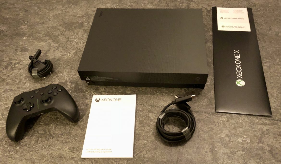 Detta är vad som finns inuti Xbox One X-paketet. HDMI-kabeln ska vara något i hästlängd, i övrigt inga direkta överraskningar (limiterade Project Scorpio-edition får även ett ställ).